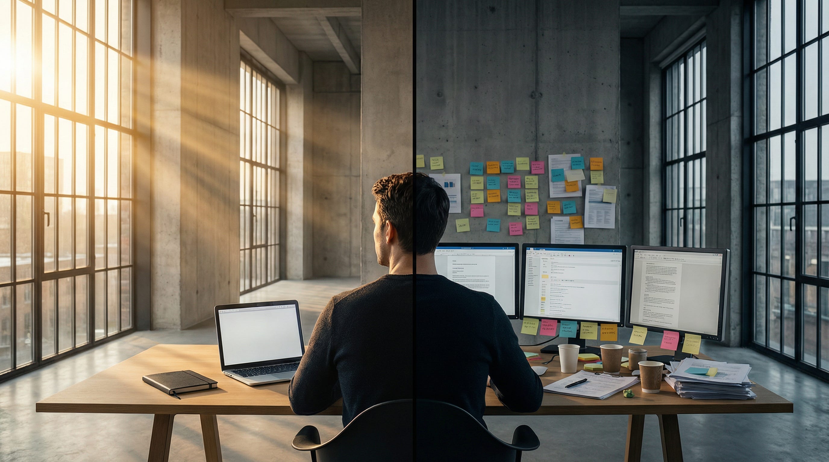 Dus hier is de vraag die je jezelf moet stellen: gebruik je AI om hetzelfde te doen in minder tijd, of om meer te doen in dezelfde tijd? Want dat zijn twee fundamenteel verschillende strategieen met fundamenteel verschillende uitkomsten voor je leven.