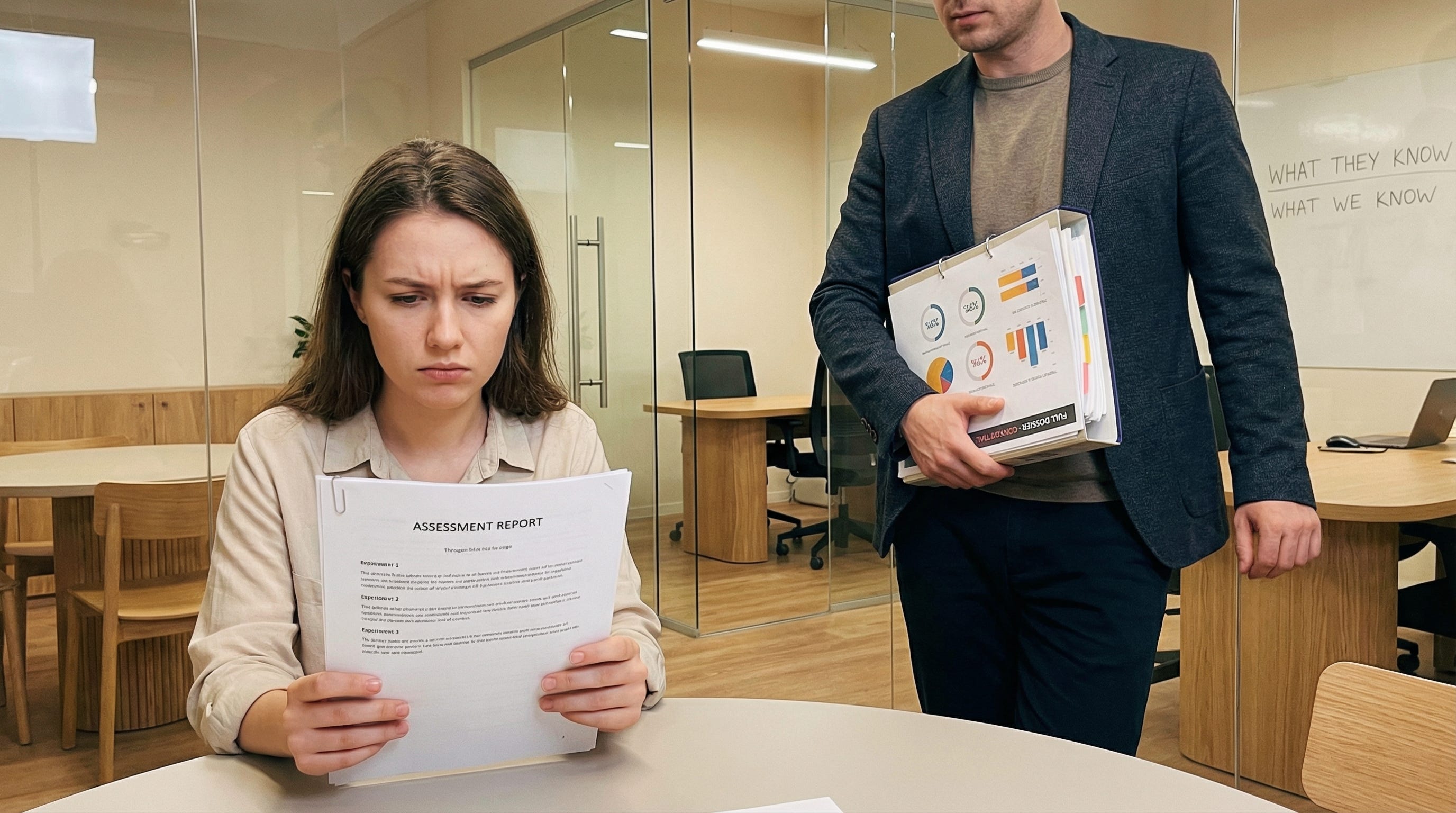 De kandidaat kreeg na het assessment een rapport van 5 pagina’s. Vaag, algemeen. “Jij bent veelal levendig en spraakzaam.” De werkgever? Die kreeg 26 pagina’s. Met een profielscore van 53%. De kandidaat wist niet eens dat die score bestond. En hier wordt het echt problematisch: de score was “bovengemiddeld”, maar de conclusie die de werkgever te zien kreeg suggereerde “beperkt ontwikkelvermogen” op bepaalde competenties. De kandidaat kon dit niet betwisten, want hij wist het niet.