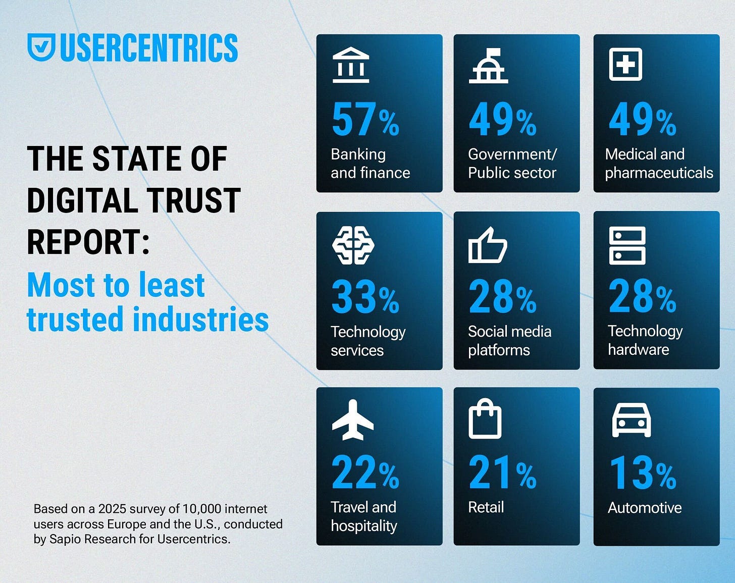 Transparantie is een wapen, geen last. Het onderzoek toont aan dat het vertrouwen in sociale media (20%) en de horeca (21%) extreem laag is, terwijl banken (58%) het beter doen. Juist in die laag-vertrouwen sectoren kan radicale openheid over je datagebruik een manier zijn om je te onderscheiden van de concurrentie.