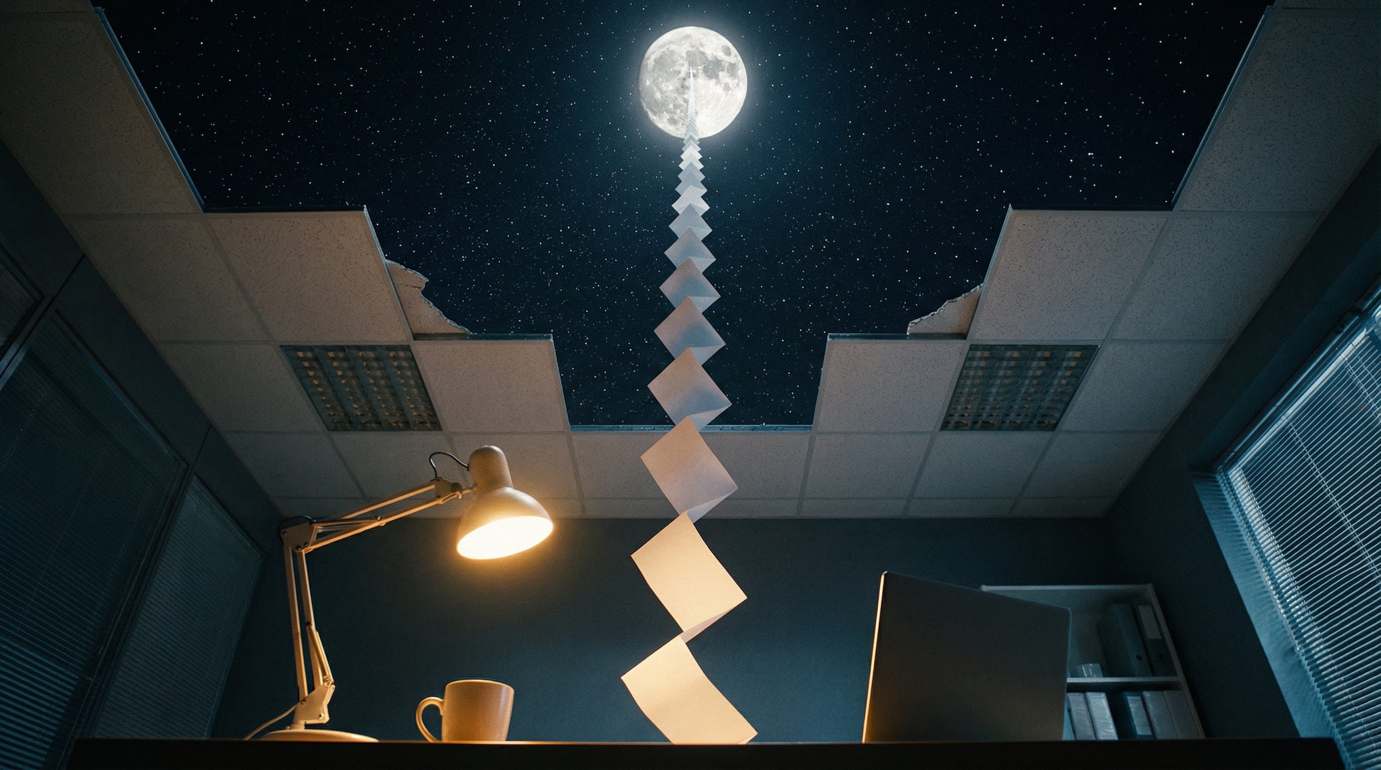 Probeer dit. Stel je voor dat je één vel papier 42 keer dubbel vouwt. De meeste mensen schatten dat het resultaat een paar meter hoog is. De werkelijkheid: het reikt tot de maan. 384.400 kilometer. Van een vel papier. Dat is wat exponentiële groei doet met je intuïtie. Het voelt onschuldig, totdat het plotseling absurd wordt.