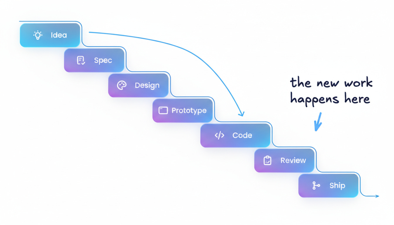 Maar er is een paradox die je moet kennen. Teams die AI gebruiken schrijven 3x sneller code, maar shippen niet 3x sneller producten. De bottleneck is verschoven van het maken naar het beoordelen, coordineren en beslissen. De echte waarde zit niet meer in produceren. Die zit in weten wat er geproduceerd moet worden.